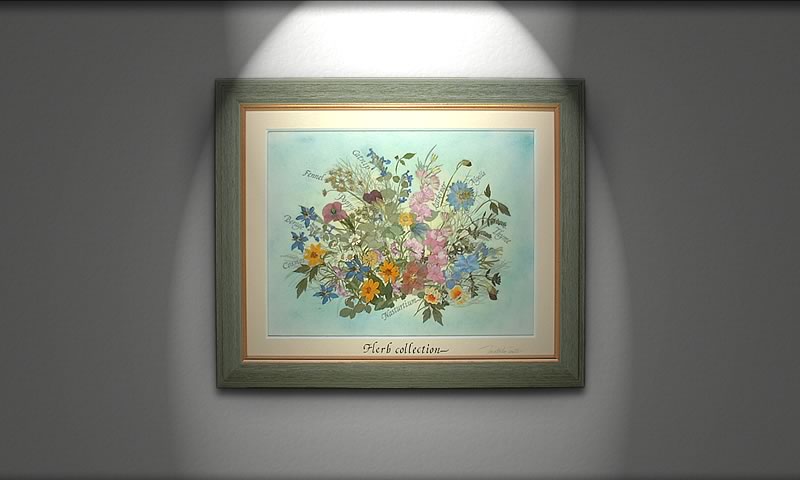 初夏にはハーブの花を押したものが背ぞろい、楽しいハーモニーが生まれます